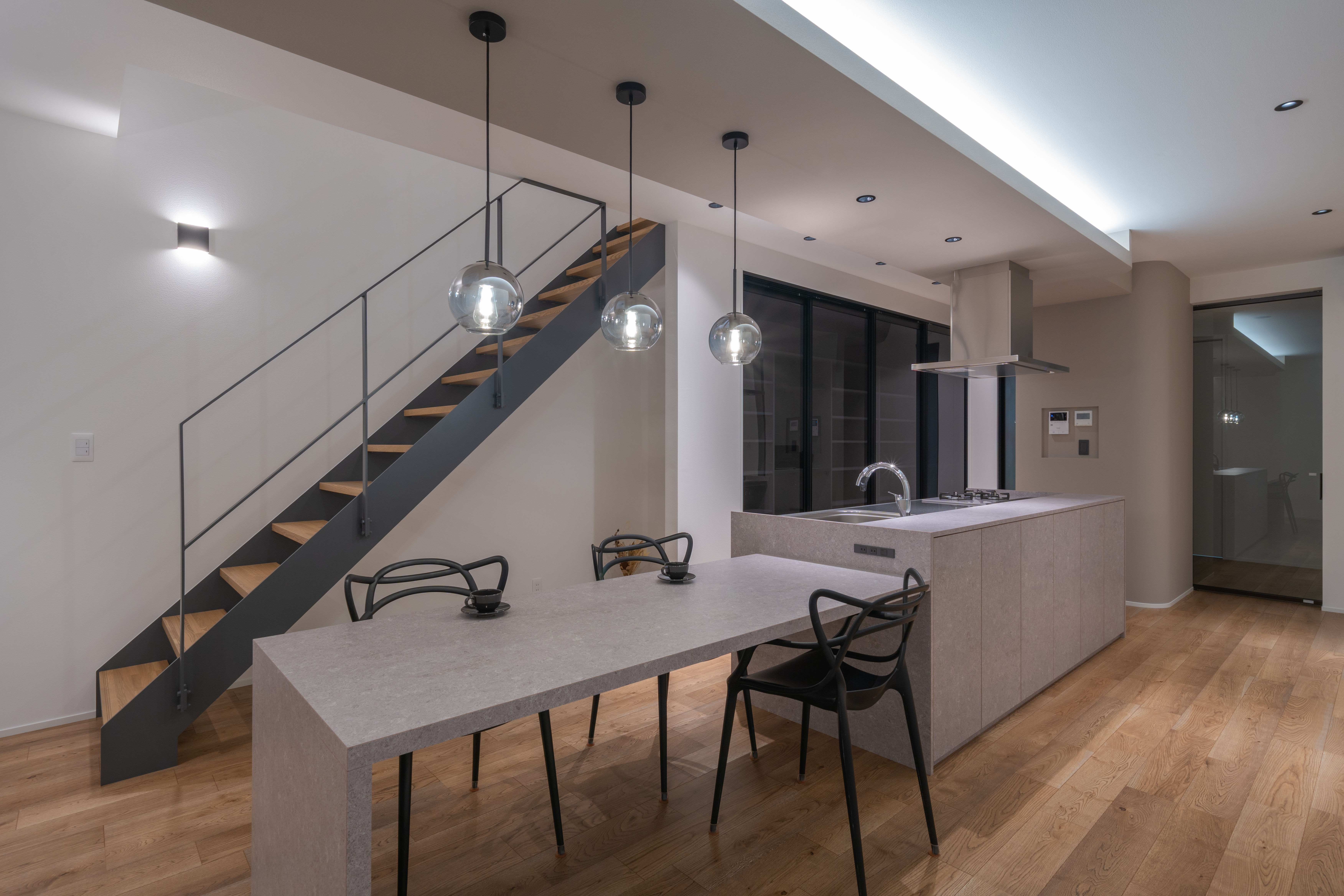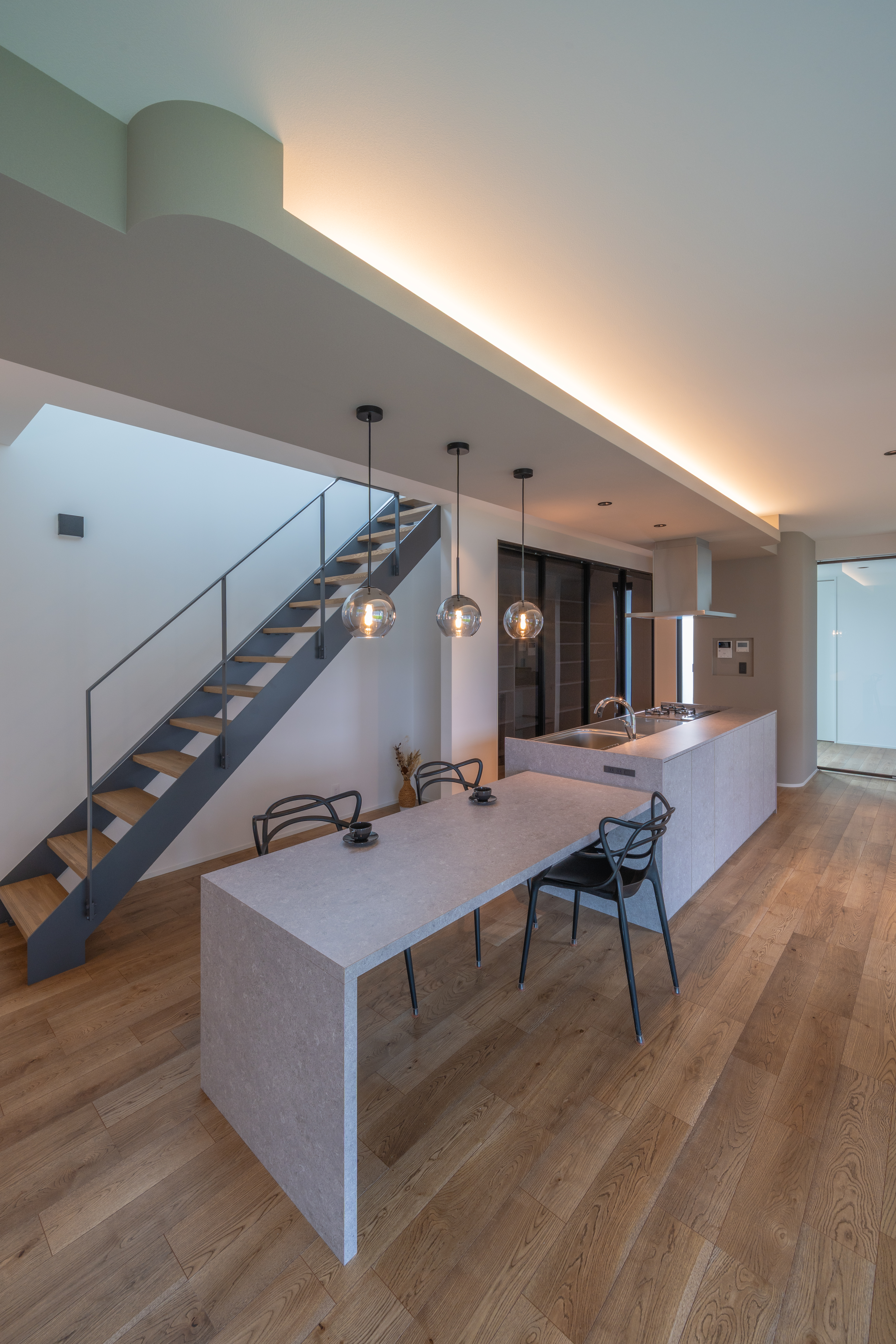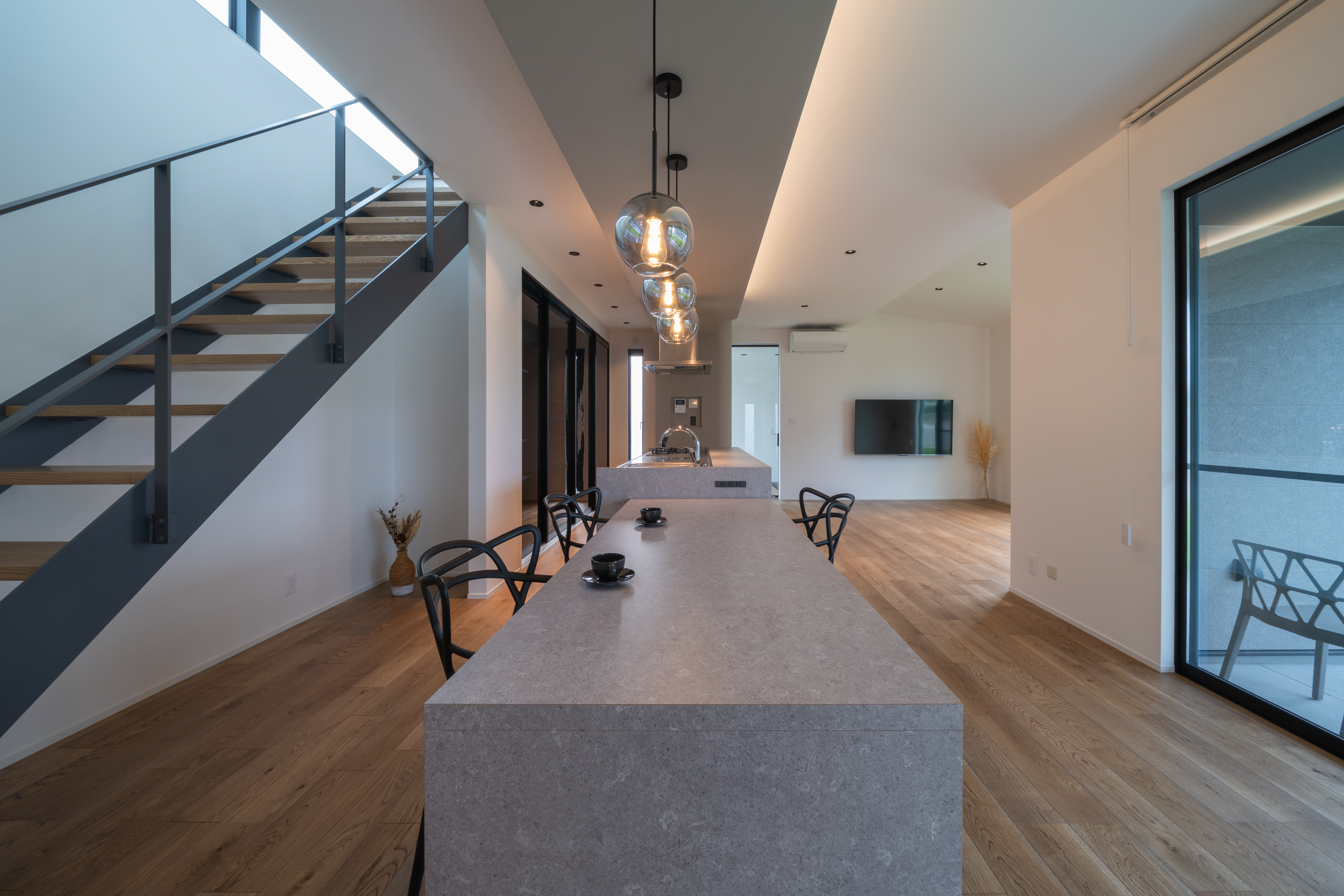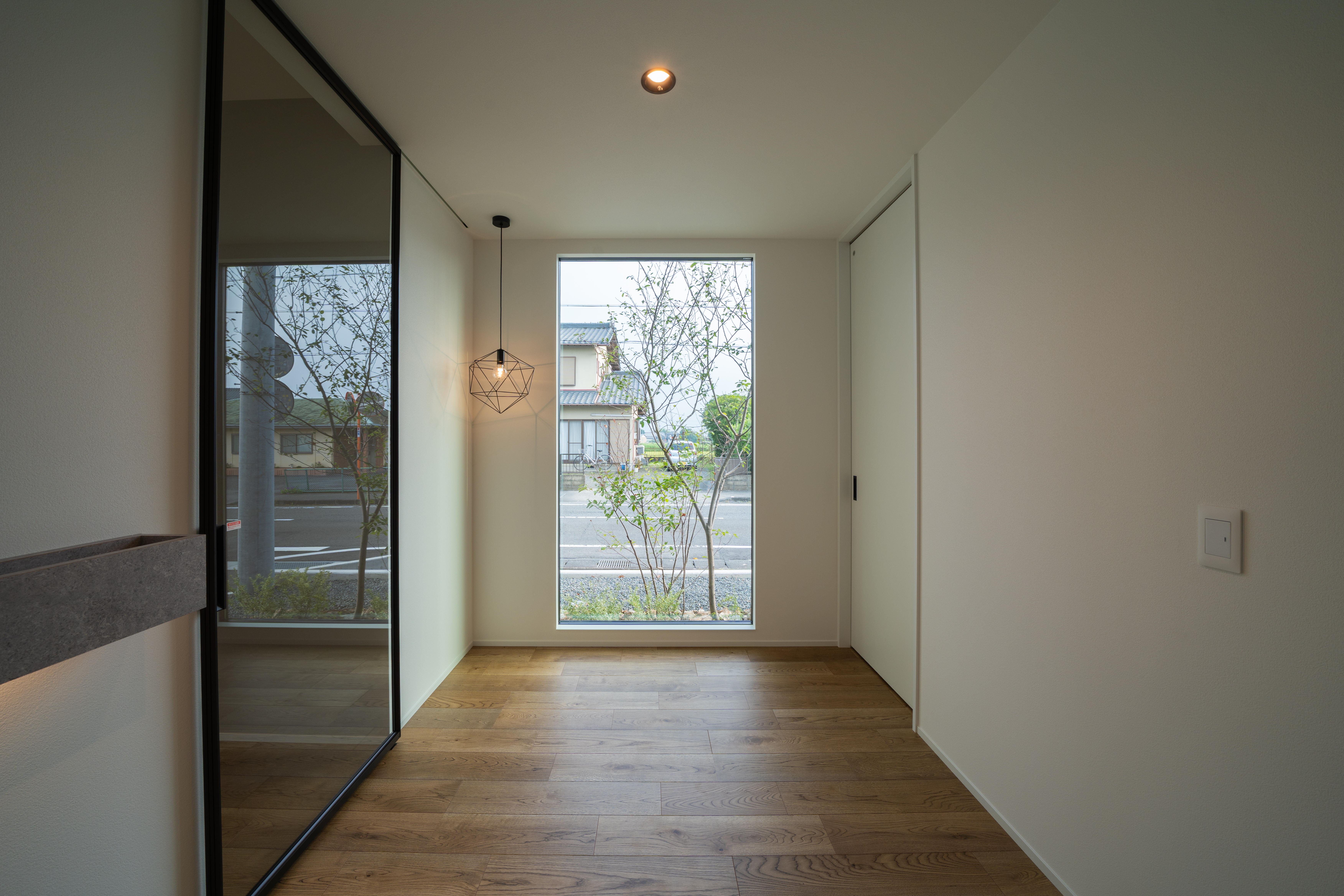 設計や素材の考え方を、空間として体感できるモデルハウス。予約制でご案内しています。