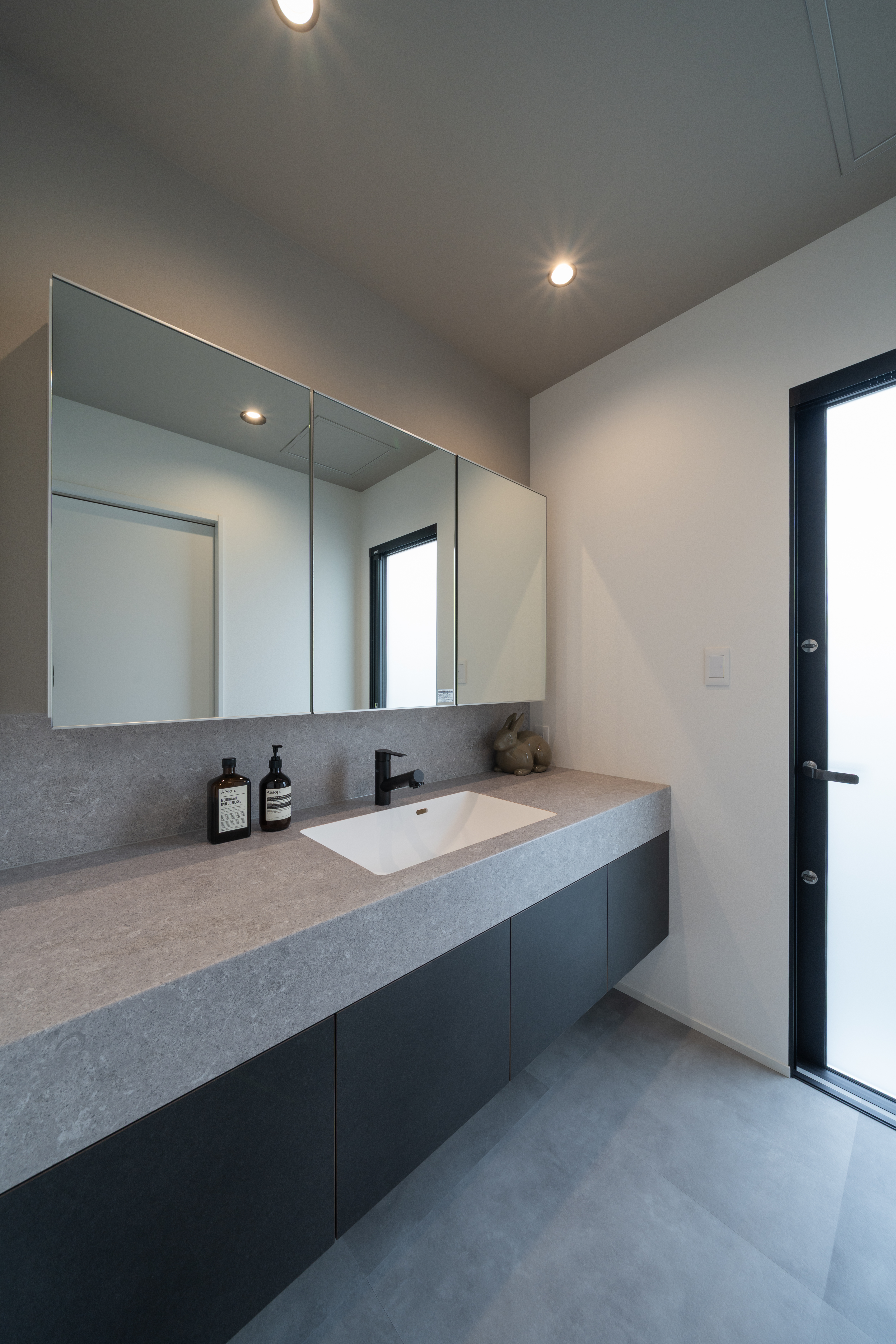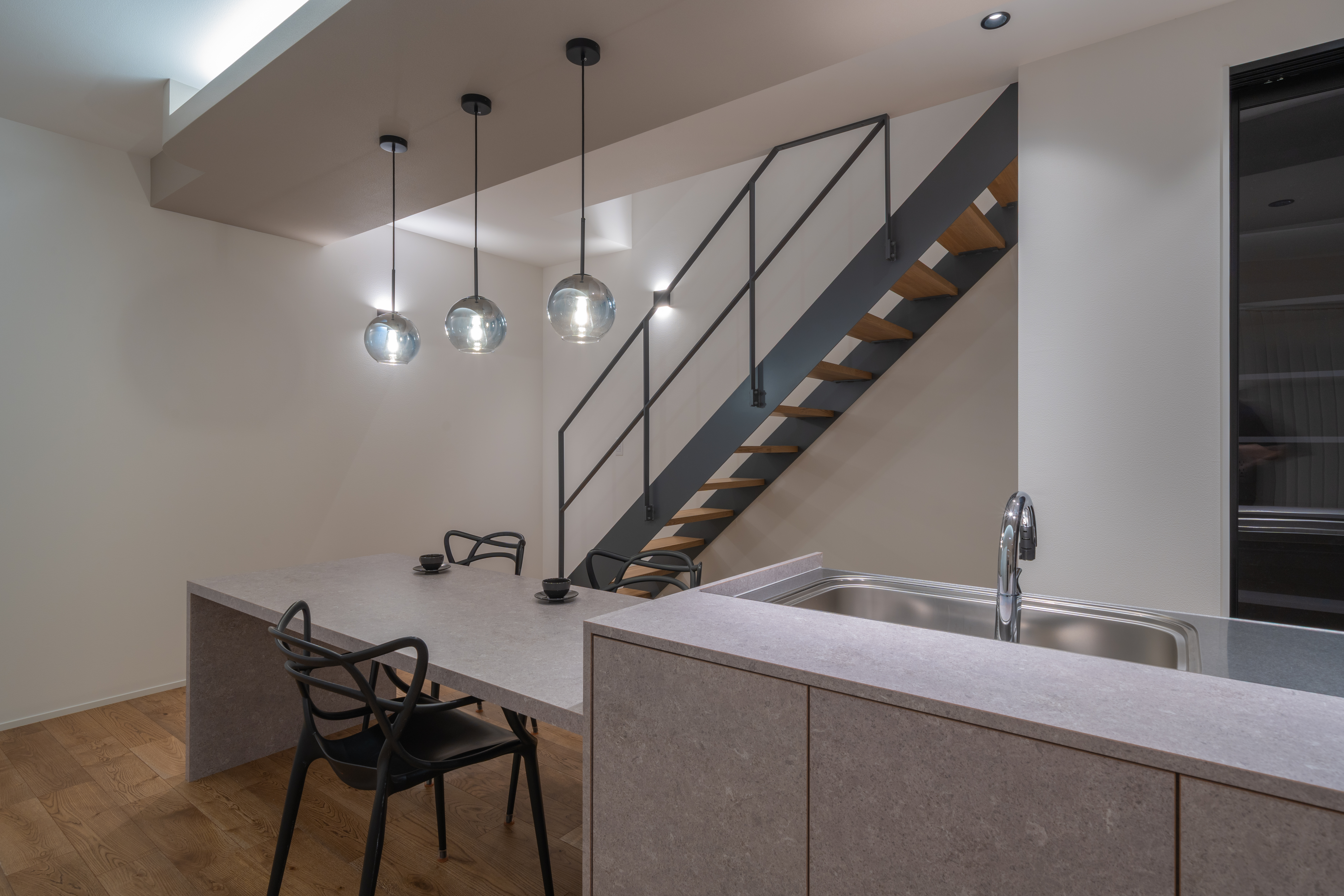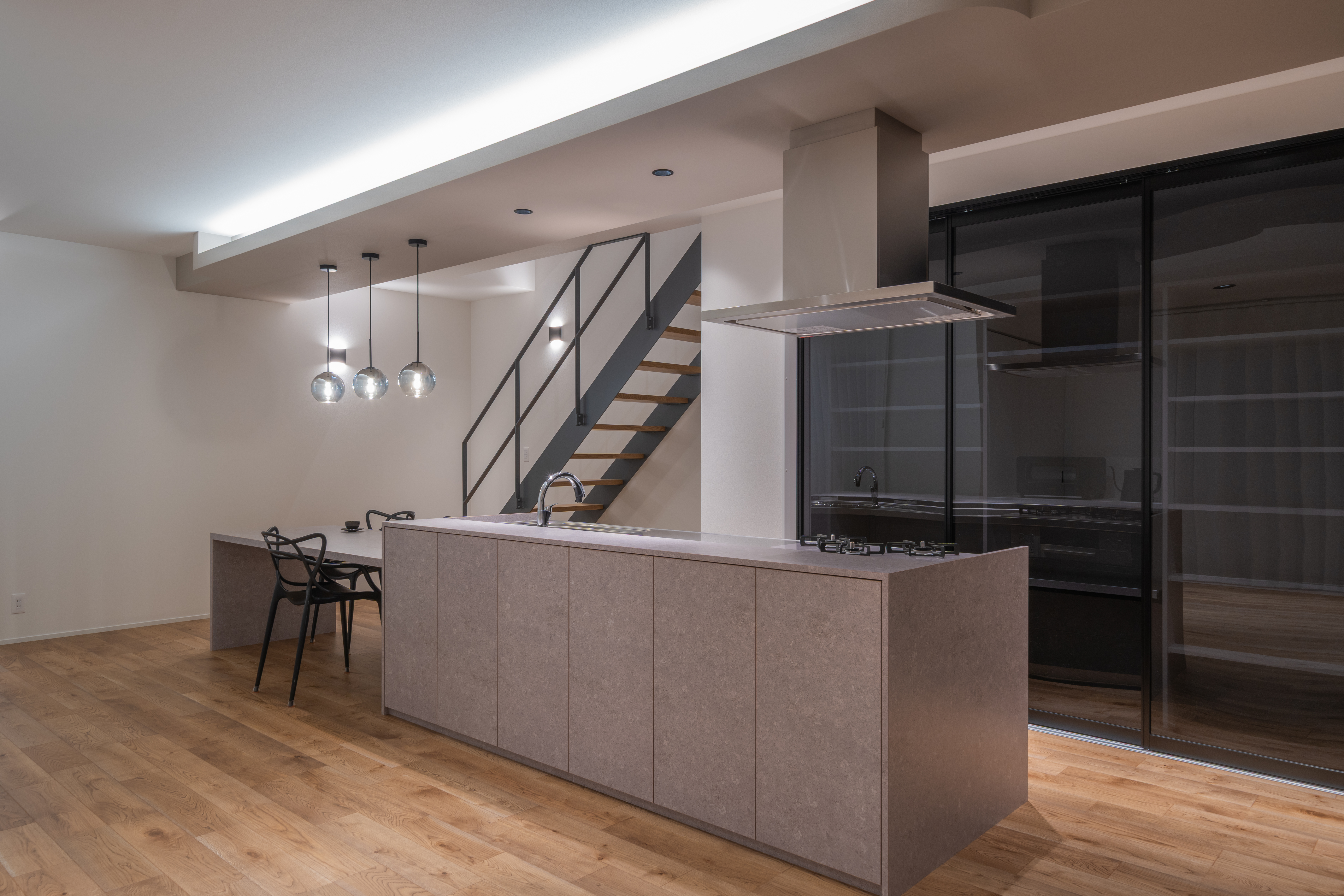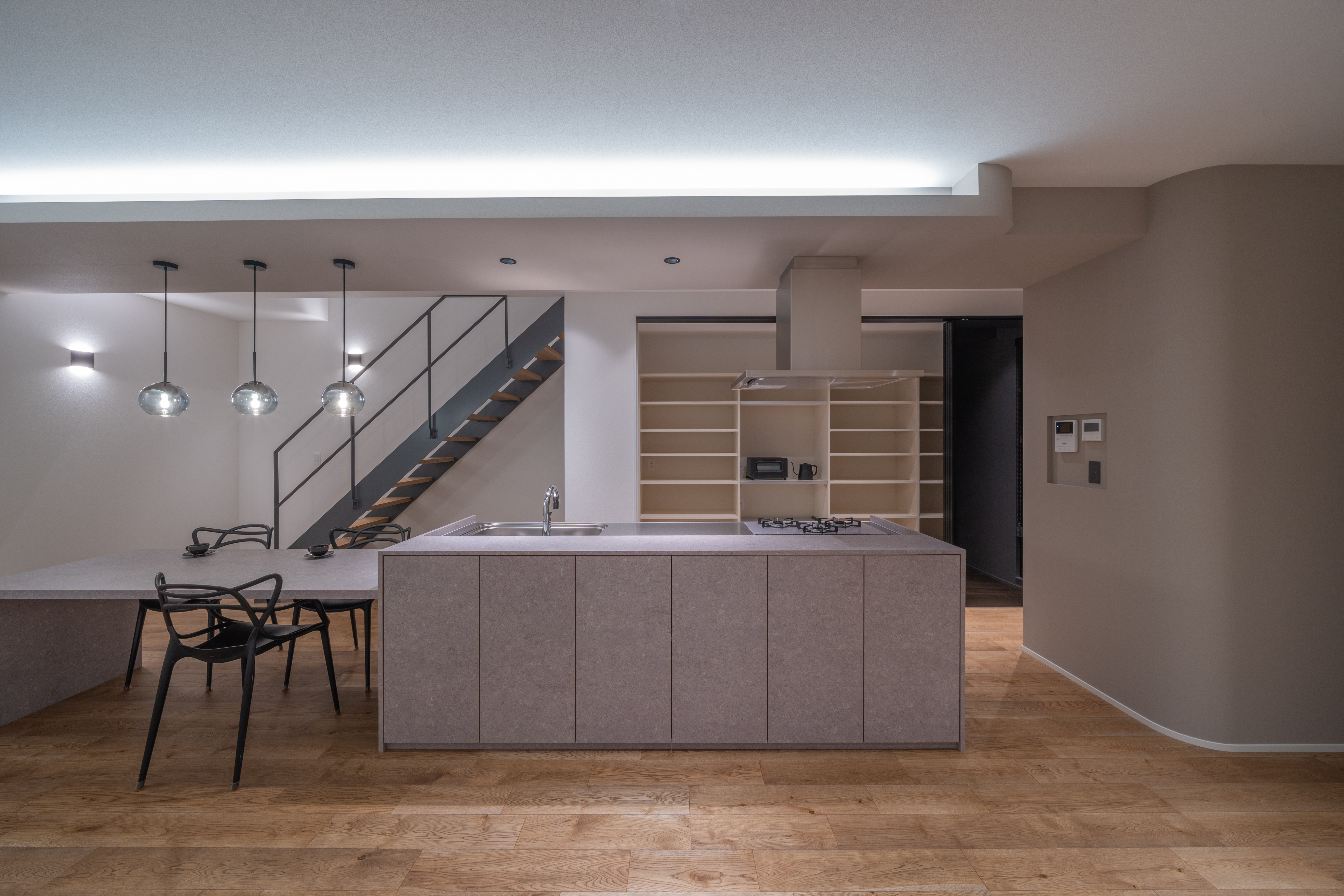 設計や素材の考え方を、空間として体感できるモデルハウス。予約制でご案内しています。